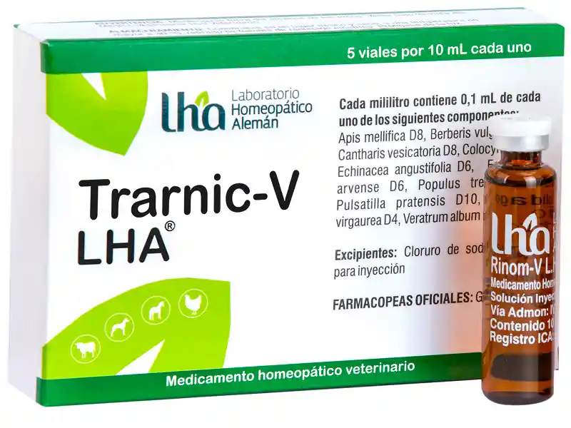 SE ENVIA POR UNIDAD, NO POR CAJA Trarnic-V LHA Viales;Viales;Inmunológico;Articular;Oncológico Medicamento de la línea veterinaria, contribuye en el tratamiento multimodal y prevención del dolor agudo y crónico, inflamaciones, manejo pre y post operatorios, traumatismo, cicatrización, picaduras de insectos y reptiles, problemas óseos, articulares, musculares, tendinosos, displacía de cadera, fiebre.