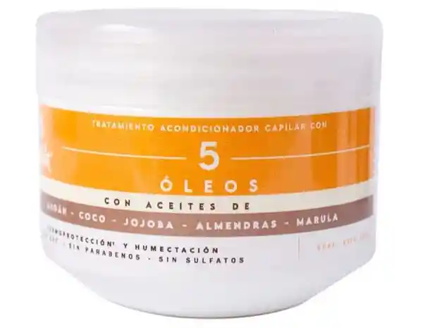 TRATAMIENTO 5 ÓLEOS LEHIT 300 G : tratamiento intensivo diseñado para nutrir, reparar y proteger el cabello seco o dañado. Su fórmula con aceites de Argán, Coco, Jojoba, Marula y Almendras proporciona hidratación profunda, sella la cutícula, reduce el frizz, aporta brillo y actúa como termoprotector contra el calor. Beneficios principales: * Hidratación y Nutrición Profunda: Ideal para cabellos secos, maltratados o rebeldes, restaurando la suavidad y elasticidad. * Termoprotección: Protege la fibra capilar del calor de planchas y secadores, creando un escudo protector. * Sellamiento de Cutícula: Ayuda a mejorar la apariencia de las puntas abiertas y a mantener la hidratación interior. * Control del Frizz: Aporta sedosidad y facilita el peinado. Modo de uso: 1. Lave el cabello con shampoo y enjuague. 2. Aplique el tratamiento de medios a puntas, masajeando suavemente. 3. Deje actuar de 3 a 5 minutos. 4. Enjuague con abundante agua.