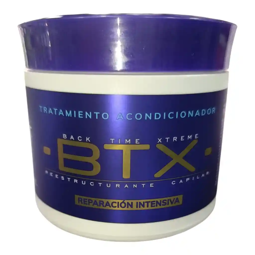BTX es una propuesta de Maxybelt, un procedimiento fácil, sencillo para mantener su cabello siempre joven y borrar las huellas del paso del tiempo. Se diseñó para ser usado en todo tipo de cabellos, especialmente cabellos secos, resecos, extremadamente secos, frágiles, quebradizos, sin vida, extremadamente dañados y químicamente tratados (tinturas, decoloraciones, exposición excesiva a radiaciones solares y calor). Esta línea de cuidado capilar está compuesta por shampoo, tratamiento, acondicionador, ampolla capilar fase 1 y ampolla capilar fase 2. Contiene ingredientes de origen natural, los cuales aportan importantes beneficios cosméticos a nivel capilar. Sistemas formadores de película que protegen el cabello en procesos químicos y oxidativos. Así se logra mayor duración de color en cabellos tinturados. También contribuyen con suavidad, elasticidad, peinabilidad y recuperar el brillo natural. Siliconas, que previenen daños por acción de calor en procesos térmicos, ayuda a disminuir el esfuerzo al peinar y cepillar, también a conservar la humedad del cabello. Modo de uso. Aplicar sobre el cabello húmedo suficiente cantidad dejar actuar veinte minutos y retirar con abundante agua, si es reparación intensiva en el empaque muestra todas las instrucciones usando todos los productos BTX. Precauciones: mantener fuera del alcance de los niños. En caso de reacciones desfavorables, suspender su uso y evitar contacto con los ojos. En caso de ocurrir, enjuagar con abundante agua.