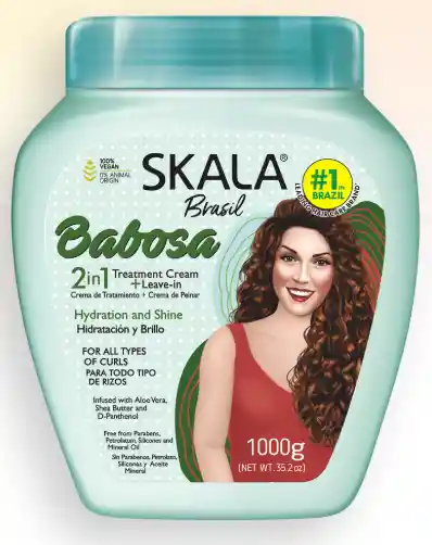 La línea **SKALA BRASIL Babosa** ha sido especialmente desarrollada para atender las necesidades del cabello rizado. Esta línea contiene un ingrediente clásico y muy utilizado, el Aloe Vera, que dejará tus rizos **hidratados y con un brillo fabuloso.** **Enriquecida con** Aloe Vera, Manteca de Karité y D-Pantenol **Tipos de Cabello:** Todo tipo de rizos (2A-4C) **Beneficios Principales** Crema 2 en 1: puede usarse como Crema de Tratamiento, Crema de Peinar o Co-wash, siendo una adición versátil a cualquier rutina de cuidado capilar; Hidratación profunda y nutrición Fortalecimiento y reparación **Calendario Capilar**: Hidratación **LIBRE DE** Sulfatos, Parabenos, Petrolato, Siliconas y Aceite Mineral