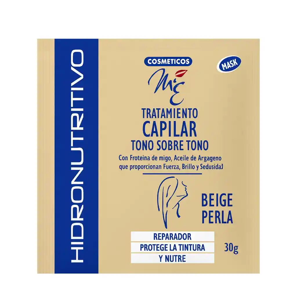 🌸 Tratamiento Capilar Tono sobre Tono – Beige Perla El Tratamiento Capilar Hidronutritivo Tono sobre Tono Beige Perla de Cosméticos M y E está diseñado para nutrir, reparar y mantener el color del cabello mientras realza los tonos beige y perlados. Su fórmula con proteína de trigo y colágeno fortalece la fibra capilar, proporcionando fuerza, brillo y sedosidad. Este tratamiento es ideal para cabellos teñidos o con mechas claras, ya que neutraliza los tonos indeseados, aportando un reflejo beige perlado natural y luminoso. Además, protege la tintura, prolongando su duración y vitalidad. ✨ Beneficios: Nutre y repara el cabello dañado. Protege el color y prolonga la tintura. Aporta brillo y suavidad. Resalta los reflejos beige perlados. Enriquecido con proteína de trigo y colágeno.