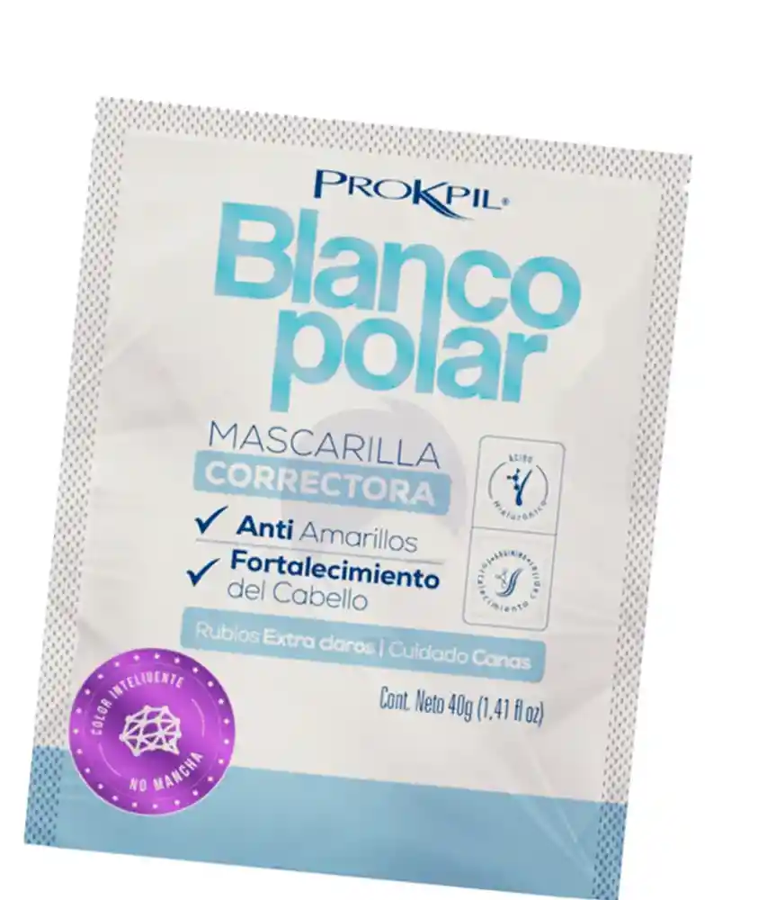 Tratamiento En Sobre Blanco Polar, Mascarilla Correctora, anti amarillos, fortalecimiento del cabello, rubios extra claros, cuidado de canas 40gr - Prokpil