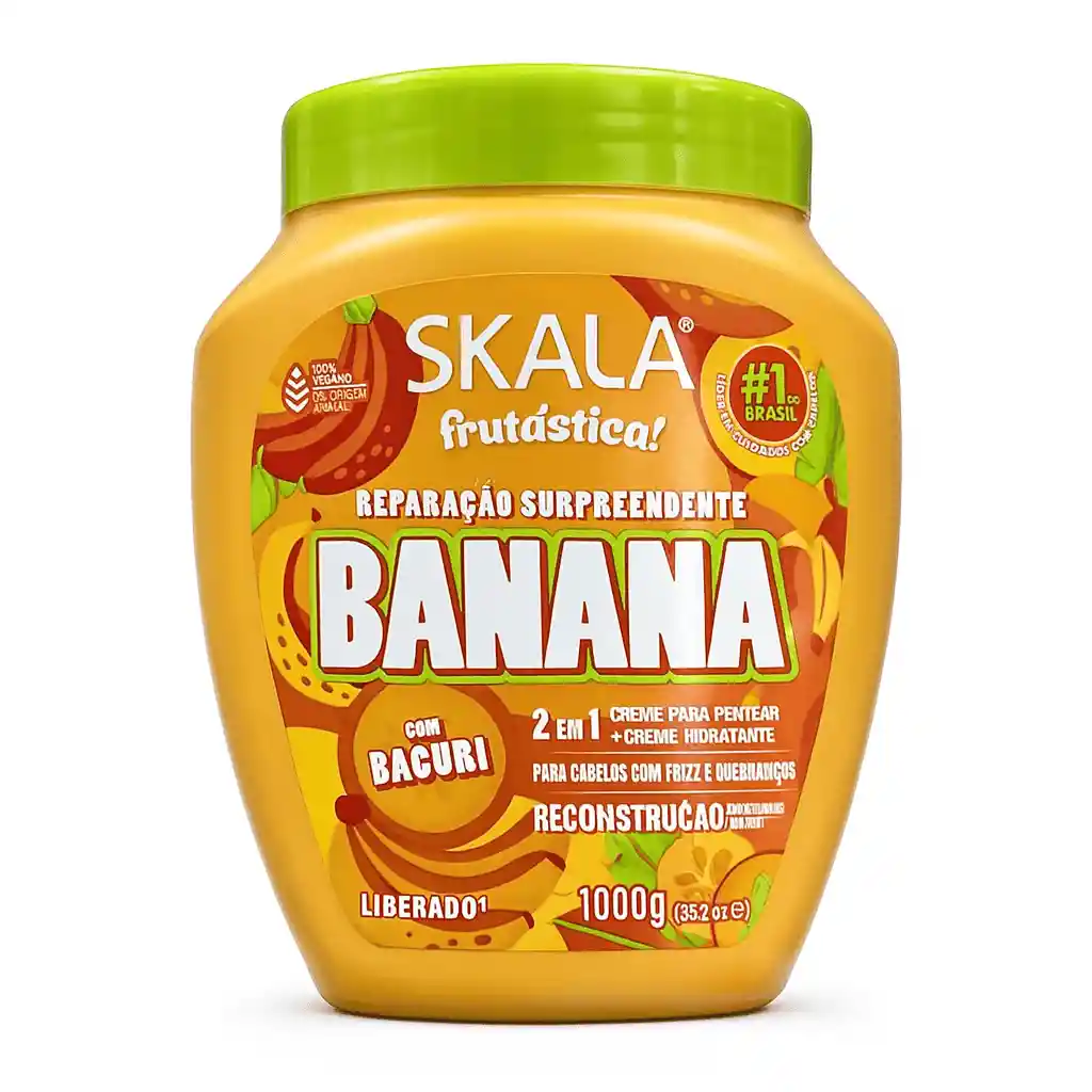 La crema Skala Banana 🍌 está diseñada para nutrir, reparar y restaurar el cabello, especialmente si está encrespado, quebradizo, dañado por químicos o desnutrido 💆♀️✨. Contiene vitaminas A, C y E 💊 y minerales que aportan fuerza, hidratación y brillo. También incluye Bacuri amazónico 🌿, un ingrediente con gran poder hidratante. Puedes usarla como: Acondicionador 🚿 Crema de tratamiento 🧴 Crema para peinar 💁♀️