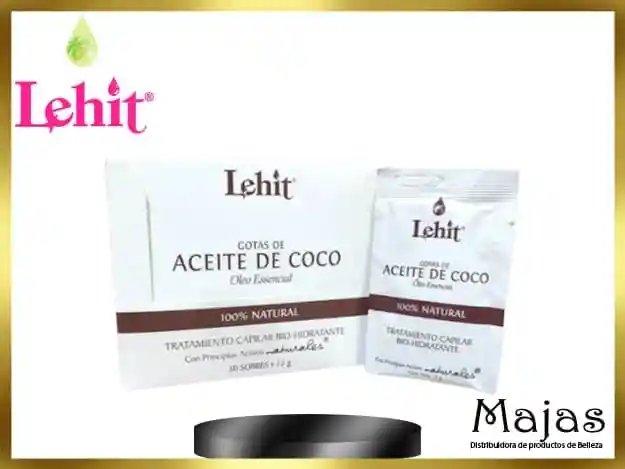 Lehit Gotas Aceite De Coco 10gr. Tratamiento oleoso que por su estructura molecular permite penetrar mas alta de la cutícula, reparando y previniendo el daño del interior hacia afuera. Brinda hidratación, brillo, humectativo y nutrición para reparar el cabello seco y dañado. Modo de uso Aplicar de medias a puntas la cantidad deseada, dependiendo del largo o estado del cabello, peine o moldee a través de una distribución uniforme