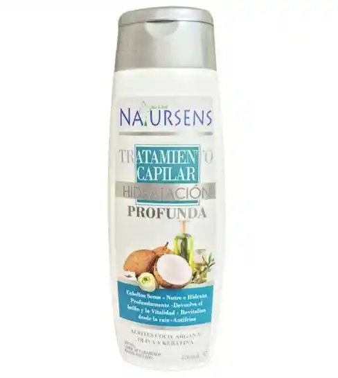 TRATAMIENTO HIDRATACION PROFUNDA IDEAL CABELLOS SECOS (cabellos rizados o afro) o MUY MALTRATADOS CONTIENE: 400ML Descripcion: El tratamiento capilar hidratacion profunda esta enriquecido con aceites de coco, oliva, argan y keratina, que aporta al cabello seco y maltratado hidratacion extrema, lo revitaliza, aporta brillo luminoso, vitalidad, suavidad y efecto antifrizz. Por su contenido de aceite de coco y mezcla de aceites naturales, aporta nutricion, evitando los putos quebrados.