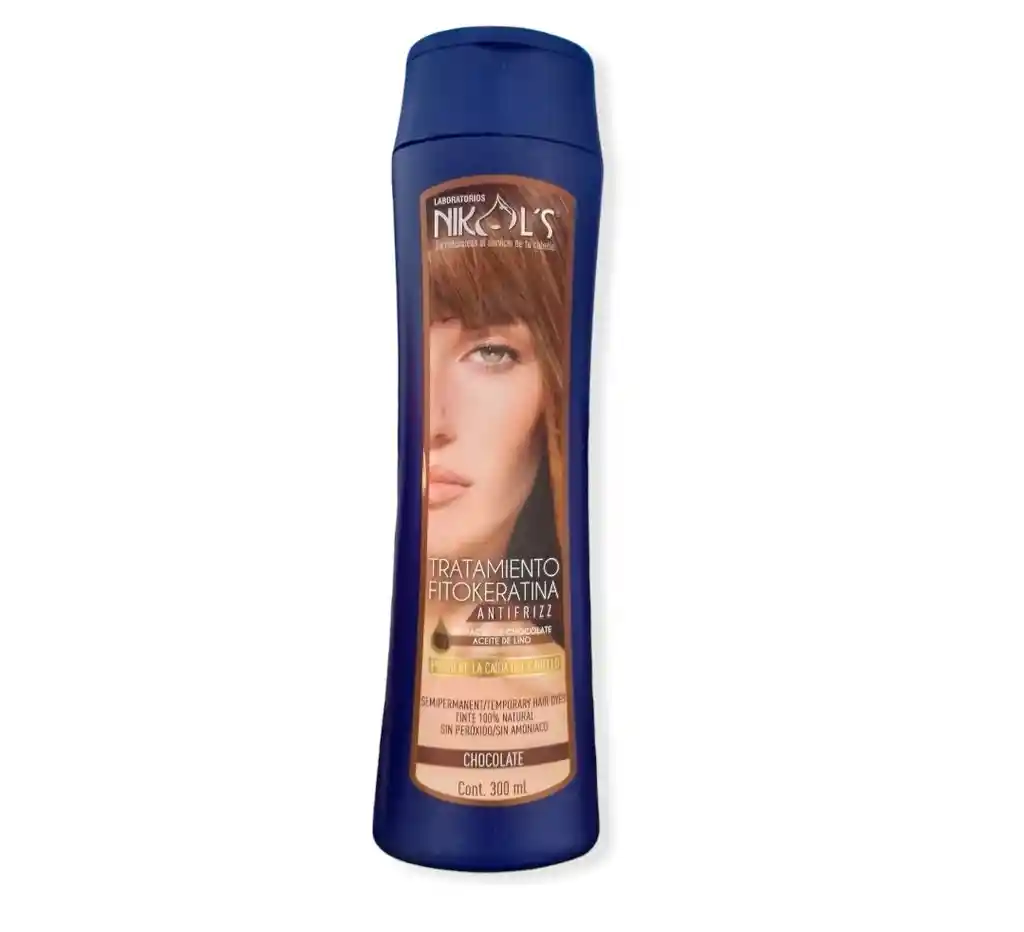 Tratamiento fitokeratina de color antifrizz con extracto de chocolate y aceite de lino. Previene la caída del cabello. Sin amoniaco.