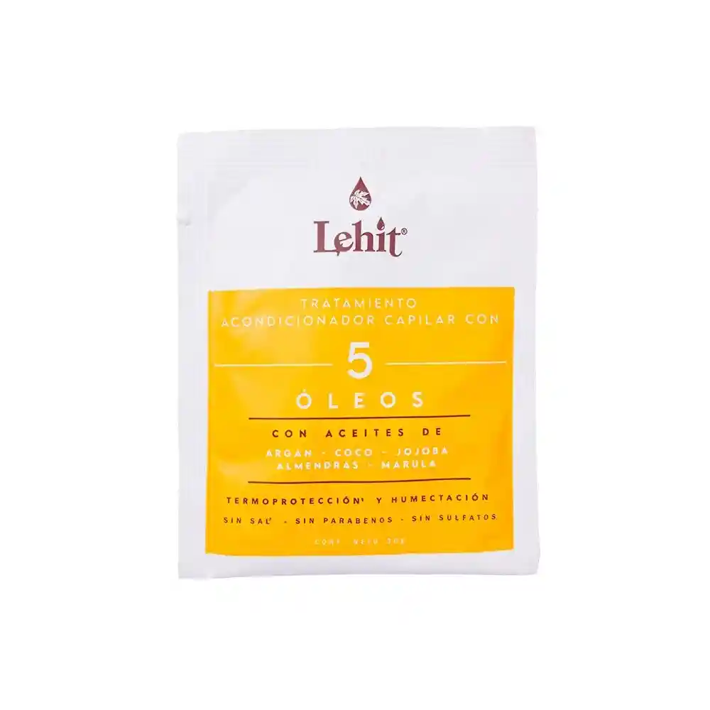Tratamiento Para El Cabello Acondicionador Con 5 Oleos Lehit con aceites de argan, coco, jojoba, amendras, marula termoproteccion y humectacion sin sal sin parabenos sin sulfaltos