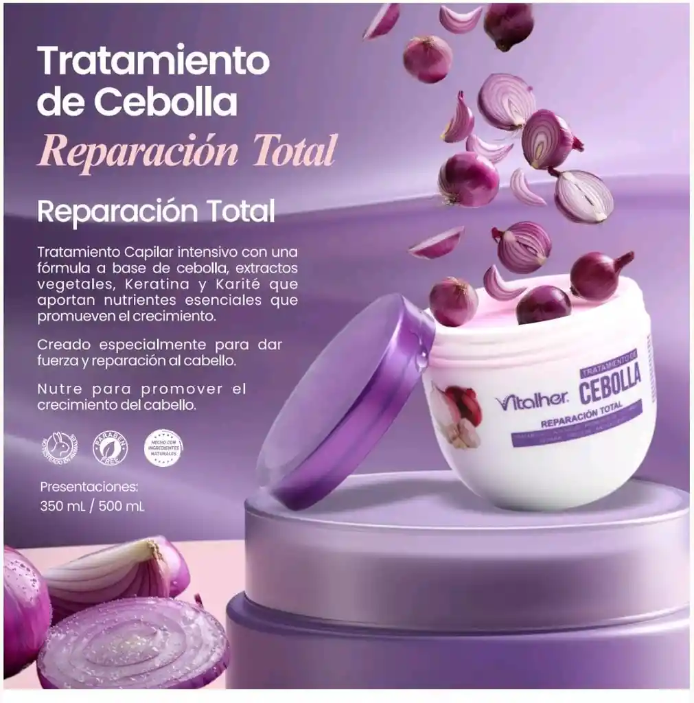 Tratamiento reparación total -cebolla extractos vegetales, keratina - VITALHER- 350 Ml.