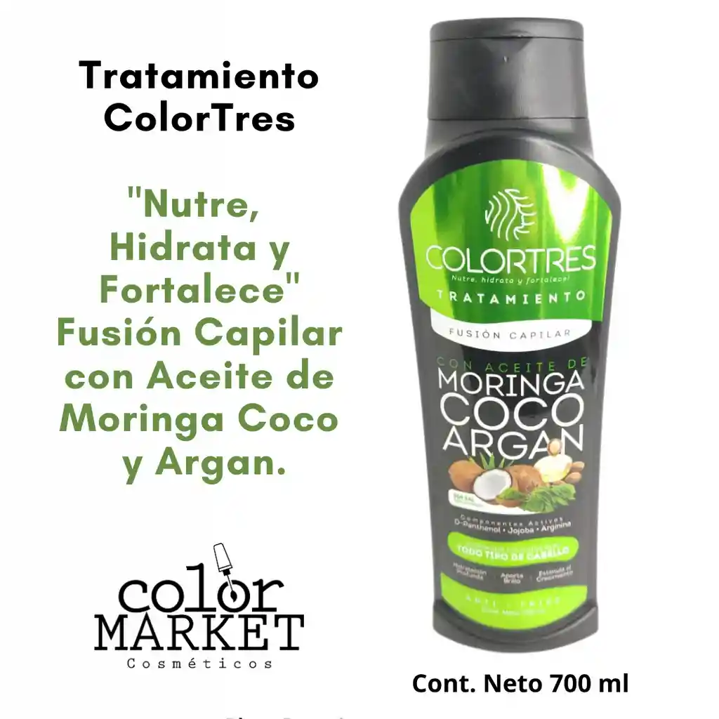 Tratamiento reparador anticaída y antifrizz para todo tipo de cabello fusión capilar con aceite de moringa. coco y argán. Nutre. hidrata y fortalece. contenido neto 700 ml.