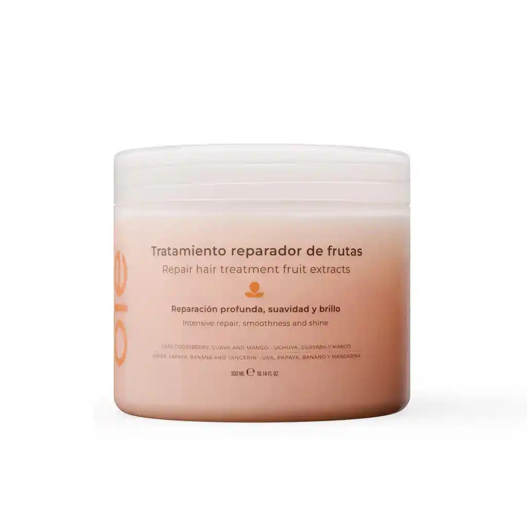 Tratamiento reparador de frutas. ¿Tienes el cabello seco, con frizz o dañado por calor, tintes o alisados, y buscas una hidratación efectiva que también fortalezca y proteja?. Un tratamiento capilar hidratante que fortalece la fibra desde el interior y protege contra el daño diario. Enriquecido con vitaminas y antioxidantes provenientes de frutas, ayuda a sellar la cutícula, reducir el frizz y dejar el cabello suave, nutrido y lleno de vida. Beneficios: Hidratación profunda sin sensación pesada. Fortalece el cabello y mejora su textura. Sella la fibra capilar y controla el frizz. Protege frente a agresiones externas como calor, contaminación o procesos químicos. Modo de uso: Aplica sobre el cabello limpio y húmedo de medios a puntas. Déjalo actuar de 5 a 10 minutos y enjuaga con abundante agua. Úsalo 1 a 2 veces por semana como parte de tu rutina de cuidado profundo. INVIMA: NSOC38965-25CO