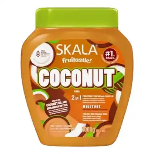 TRATAMIENTO SKALA COCONUT 1000 G : es una mascarilla capilar diseñada para la nutrición e hidratación profunda de cabellos secos, dañados o con frizz. Su fórmula es 100% vegana y está libre de sulfatos, parabenos, siliconas y aceites minerales, lo que la hace apta para técnicas como el Co-Wash. Beneficios y Propiedades Este producto actúa penetrando profundamente en la cutícula capilar para restaurar la vitalidad de las hebras. * Nutrición Intensa: Enriquecido con aceite de coco, manteca de karité y manteca de murumuru para fortalecer la fibra capilar. * Reparación: Ideal para cabellos maltratados por procesos químicos o calor, ayudando a reducir el quiebre y las puntas abiertas. * Control del Frizz: Sella la fibra capilar, aportando brillo natural, suavidad y mayor manejabilidad. Modos de Uso Según las recomendaciones de uso, el producto es versátil y puede aplicarse de distintas formas. * Como Acondicionador: Aplicar de medios a puntas después del shampoo, dejar actuar de 3 a 5 minutos y enjuagar. * Como Tratamiento Profundo: Aplicar sobre el cabello lavado, masajear por secciones y dejar actuar durante 15 minutos (se puede usar gorro térmico para mejores resultados) antes de enjuagar con abundante agua. * Pre-Poo y Co-Wash: Puede usarse antes del lavado para proteger las puntas o como sustituto del shampoo en rutinas de lavado suave. * Nota sobre Crema de Peinar: Aunque algunas versiones como la línea "Frutástica" se comercializan como 2 en 1 (tratamiento y crema de peinar), la versión estándar de Óleo de Coco no siempre se recomienda como crema de peinar sin enjuague.