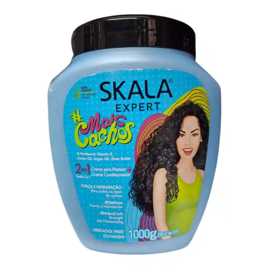 Tratamiento Mais Cachos Skala Para Que Sirve Se usa como Crema de Peinar o como Crema Hidratante. También se usa como Co-Wash. Para las texturas 3 y 4, se puede usar como Pre-Poo. Con ingredientes ricos en nutrientes que hidratan y desenredan, da brillo, fuerza y ultra reparación, además de dejar los rizos con mucho volumen: D-PANTHENOL: Fuerza e Hidratación MANTECA DE KARITÉ: La nutrición extrema, garantiza el brillo y la hidratación ACEITE DE RICINO: Fortalece el cabello y previene la ruptura de la fibra capilar. Libre de Sulfatos, Parabenos, Siliconas, Petrolato y Aceite Mineral. 100% Vegano, 0% Origen Animal. ¿Cómo usar el Tratamiento Mais Cachos Skala? Tratamiento: Aplícame de medios a puntas, déjame actuar 20 minutos y enjuágame con abundante agua. Acondicionador: Aplícame de medios a puntas, desenreda con un cepillo suave o con los dedos, déjame actuar 3 minutos y enjuágame con abundante agua. Crema para peinar: Aplícame por secciones, mechón por mechón, utiliza tu técnica de definición favorita y deja secar tus crespos al aire libre o con difusor. Para mejores resultados úsalo junto con el Shampoo Skala Mais Cachos.