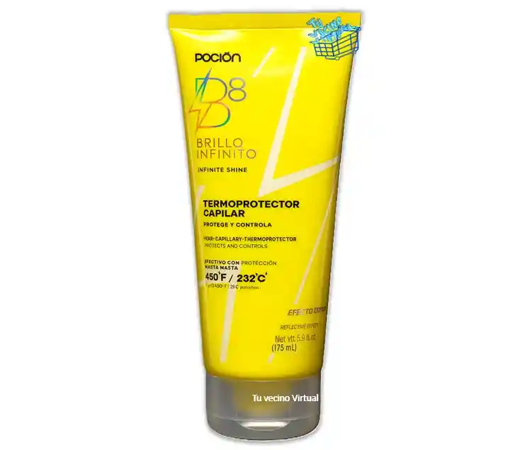 En tu vecino virtual también encontraras : Anyeluz, syam cosmetic, piel de oro, Kaba, class gold, lampiña, Te verde de matcha Benefit, te plus, te latte, te negro, exfoliante, aceite de coco, pomada alfa, colageno hidrolizado,vinipel osmótico, Bioaqua Acne, Mascarillas,tónico, Trendy, la pocion, HGW y muchos mas ————————————————————————————————————————————————— ----------------------------------------------------------------------------------------------------- Tratamien Termoprotector Pocion B8 Termoprotector, nos brinda la riqueza de la gran biodiversidad amazónica plasmada en los activos más poderosos para crear una auténtica mezcla de alta afinidad, capaz de proporcionar un sensorial superior y cuenta con hidratantes de alta tecnología que neutralizan el impacto del calor. Modo de uso: Aplica B8 termoprotector en las palmas de tus manos dependiendo de la abundancia y longitud de tu cabello. Toma porciones de cabello y aplica hacinedo énfasis en las puntas hasta llegar a la raíz para un total cubrimiento. Luego, seca de la forma que prefieras ( al natural o secador ) al finalizar procede a realizar tu planchado hasta obtener el resultado deseado. Contenido 160 ml