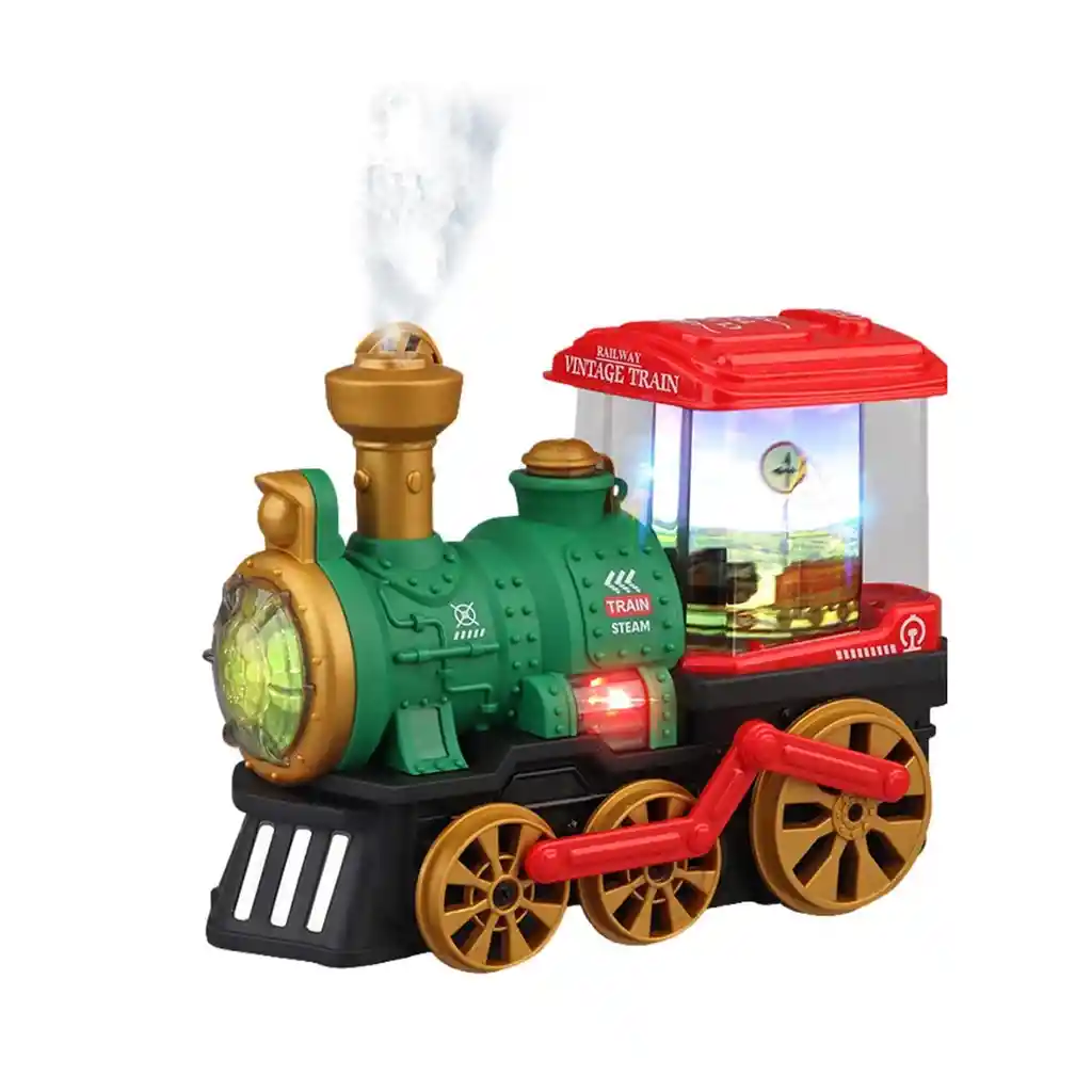 Este encantador tren de juguete combina diversión y tecnología al integrar un carrusel de imágenes en 3D en su parte trasera, que gira mientras el tren avanza, creando un espectáculo visual fascinante. Equipado con luces brillantes, sonido realista y movimiento suave, el tren ofrece una experiencia inmersiva que encantará a niños y adultos por igual. Además, emite vapor auténtico gracias a un compartimento especial donde se puede agregar agua, lo que añade un toque mágico y realista al juego. /// El juguete incluye baterías /// Ficha Técnica: Dimensiones: 18 cm x 9.5 cm x 14 cm Material: Plástico libre de BPA Apto para niños + 3 Años Funcionamiento : 3 Baterías AA Referencia: TR140 Certificado de conformidad: CS-LCO-13233-2021S2/432 ** _Para defectos de fábrica o retractos: \_Por favor revise el producto apenas lo reciba y antes de usarlo. No aplican ley de retracto o defectos de fábrica luego de usar el producto. Se manejan máximo 5 días para reportar defectos de fábrica (por ejemplo, producto funciona mal, piezas faltantes, rotas, etc). Para hacer efectiva la devolución el producto debe devolverse con el empaque original, el cual debe estar en buen estado, incluir todos los documentos y las partes completas y sin daños.