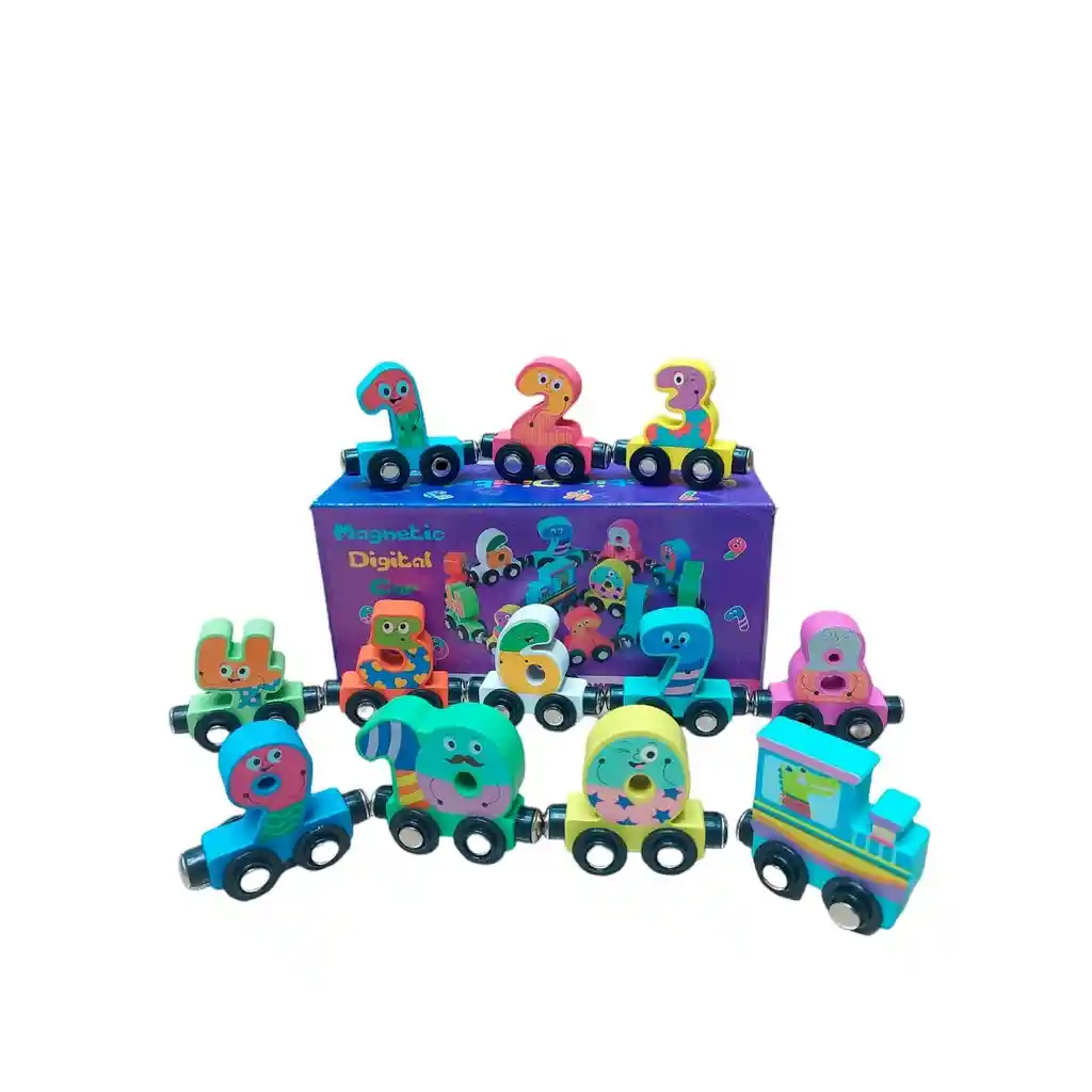 Este adorable tren de madera está compuesto por vagones con forma de diferentes números , cuidadosamente elaborados para crear un juguete educativo y entretenido. Cada vagón, con sus colores llamativos y formas amigables, representa un numero distinto y se conecta mediante imanes, facilitando su unión y separación. Es perfecto para que los niños se diviertan mientras desarrollan habilidades motoras y aprenden sobre estas fascinantes criaturas, convirtiendo el juego en una experiencia didáctica. Ficha Técnica: Dimensiones del vagon: 7,3 cm x 7,3 cm x 1,2 cm Material: Madera - Metal Edad recomendada: + 3 años Referencia: C4077 Certificado de conformidad: E5-0359-2021 Términos de garantía: Para defectos de fábrica o retractos: Por favor revise el producto apenas lo reciba y antes de usarlo. No aplican ley de retracto o defectos de fábrica luego de usar el producto. Se manejan máximo 5 días para reportar defectos de fábrica (por ejemplo, producto funciona mal, piezas faltantes, rotas, etc). Para hacer efectiva la devolución el producto debe devolverse con el empaque original, el cual debe estar en buen estado, incluir todos los documentos y las partes completas y sin daños.
