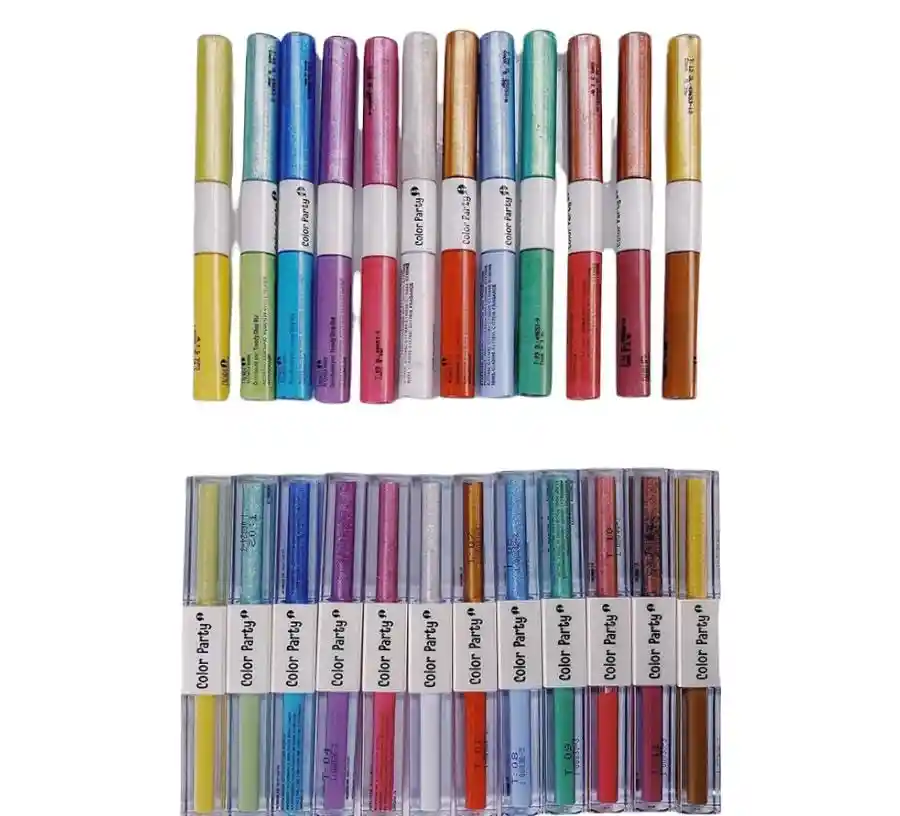 Lado matte a prueba de agua. Lado en glitter. Alta adherencia, larga duración. Calidad profesional. Más de 5gramos a cada lado, eso es muchísimo producto, te durará bastante tiempo.