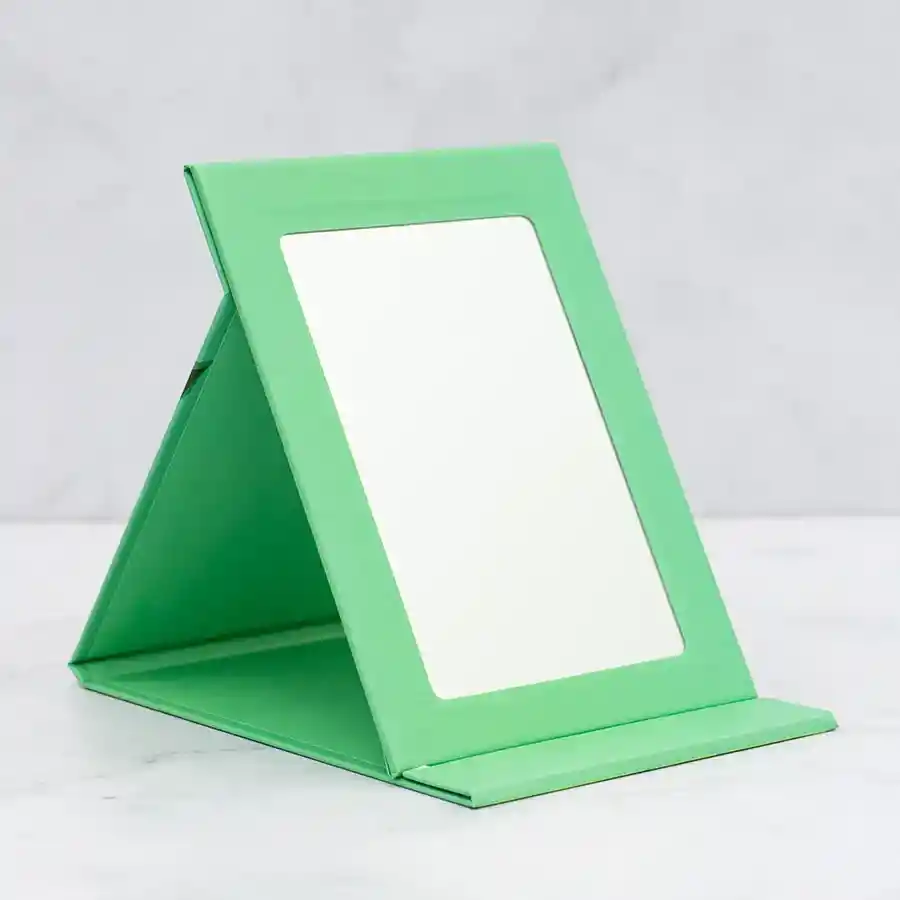 "Medida 10,7cm x 15cm ¡No te maquilles más con espejos ultra pequeños o con malos reflejos! Nuestro espejo de tocador es perfecto para llevar contigo a todo lugar, para retocar o hacer tu look del día. Espejo ajustable que queda de pie en cualquier superficie plana. Diseño exclusivo de Trendy. Trendy no testea en animales."