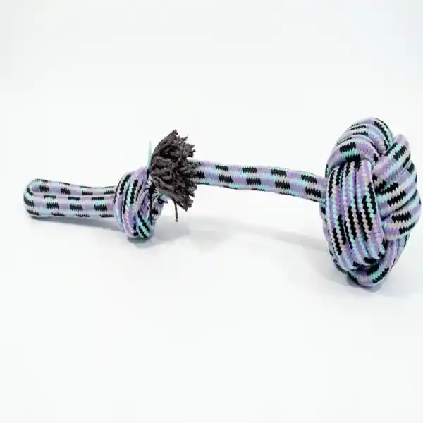 Este resistente juguete de cuerda para perros combina durabilidad y diversión en un diseño de triple nudo con una llamativa combinación de colores púrpura, azul y negro. Cuenta con una pelota de nudo tipo "puño de mono" en un extremo para facilitar el lanzamiento, un cuerpo central alargado ideal para juegos de tracción y un asa de agarre en el extremo opuesto, lo que lo convierte en el accesorio perfecto para promover la salud dental y el ejercicio interactivo de su mascota.