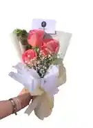 Tres unidades de rosa rosada con gypso y eucalipto Tres delicadas rosas rosadas que simbolizan ternura y gratitud, perfectas para sorprender con un pequeño pero significativo detalle. Nota: La flor puede ser sustituida dependiendo de la disponibilidad de color y del producto. "Mensaje Personalizado" máximo de 30 caracteres (Dejar el mensaje en el chat, los comentarios no se previsualizan para la tienda, por lo que si se dejan allí no podrá ser incluido).