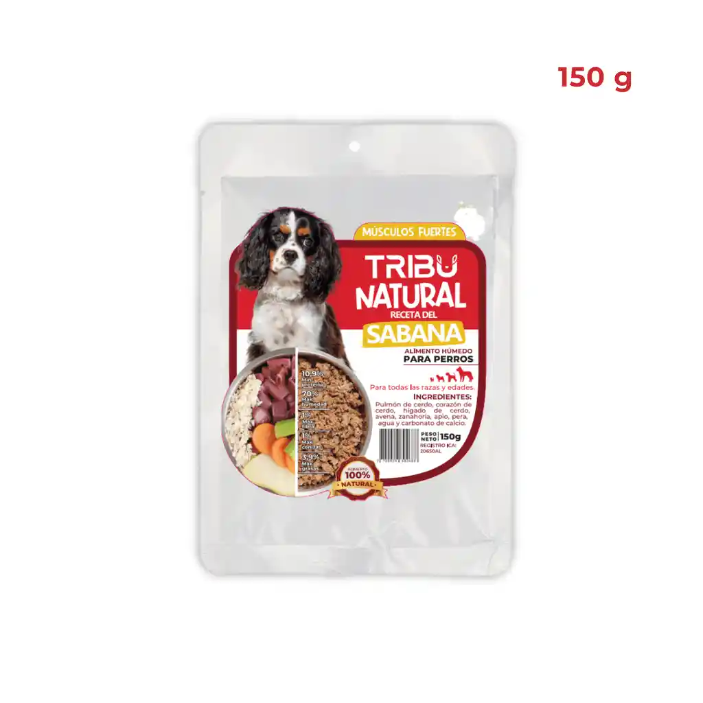 Nuestro nuevo alimento Tribu natural es fabricado a partir de tecnología avanzada para ofrecerles un alimento premium que no requiere refrigeración ni conservantes, es 100% natural, húmedo y fresco, con un alto aporte de proteína de origen animal que tu peludito va amar. Recomendado: para perros de todas las edades a partir de los 2 o 3 meses. Ingredientes: Pulmón de cerdo, corazón de cerdo, hígado de cerdo, avena, zanahoria, apio, pera, agua y carbonato de calcio. Información nutricional: 10.9% mínimo de proteína. 70% máximo de humedad. 1% máximo de fibra. 1% máxima de cenizas. 3.9% máximo de grasas. 136 kcal/100 g