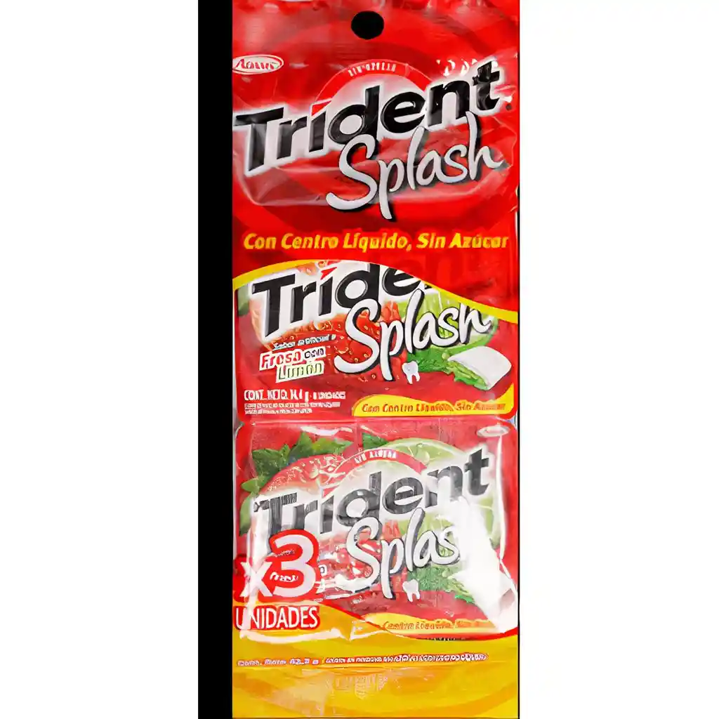 Chicle sin azúcar con sabor a fresa ácida en pastillas rellenas de caramelo líquido con sabor a limón.