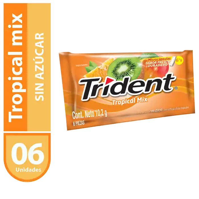 Chicle Sabor A Frutos Tropicales - Trident - Paquete 6 Und