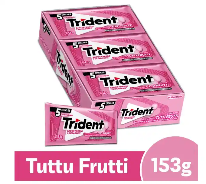 Disfruta del inconfundible sabor del Trident Tutti Fruti en su práctica presentación de caja con 18 unidades de 8,5 g cada una. Ideal para refrescar tu aliento y acompañarte en cualquier momento del día.