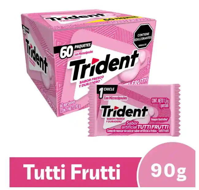 Refresca tu aliento con el delicioso sabor del Trident Tutti Fruti en su presentación de 60 unidades de 1,5 g cada una. Perfecto para llevar en el bolsillo y disfrutar en cualquier ocasión.