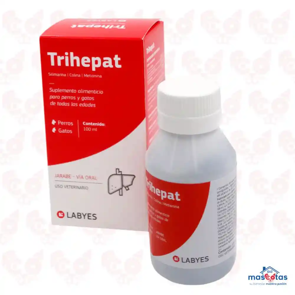 DESCRIPCIÓN: Trihepat, protector y regenerador de la célula hepática, con acciones coleréticas y colagogas. Reactiva y potencia las funciones hepatobiliares. De origen 100% natural. Sin contraindicaciones ni efectos adversos. Compuesto por Silimarina, un antioxidante proveniente del cardo Mariano (Silybium marianum), Colina y Metionina. Su formulación se destaca por: A nivel del hígado: Protege la membrana del hepatocito, previene la congestión, degeneración y lisis del mismo. Actúa sobre los fagocitos del Sistema Retículo Endotelial (SER) mejorando su acción detoxificante. Regenera el parénquima hepático, previene el hígado graso y la cirrosis. A nivel del Sistema Biliar: favorece la formación y excreción de bilis (acción colagoga y colerética). FÓRMULA: Cada 100 ml contiene: Silimarina 0,6 g DL- Metionina 8,0 g Colina bitartrato 8,0 g Excipientes c.s.p. 100 ml INDICACIONES: Hepatopatías agudas y crónicas de diversos orígenes, como apoyo a la terapéutica específica. Como profilaxis frente a terapias con diversos medicamentos (antiepilépticos, antimicóticos, antibióticos, corticoides, etc.) o patologías varias (hipotiroidismo, Síndrome de Cushing, carcinogénesis) que conducen a la degeneración grasa, con posterior cirrosis del parénquima hepático. Intoxicaciones accidentales. Hígado graso de etiología desconocida. En estados infecciosos y disfunciones gastrointestinales de variado origen. En el paciente vomitador crónico. Frente a la presencia de barro biliar y/o colecistitis. En alteraciones bioquímicas del hepatograma. DOSIS Y VÍAS DE ADMINISTRACIÓN: Vía oral. Dosis terapéutica: 4 ml cada 15 Kg de peso, 3 veces por día. El tratamiento se prolonga mientras dure la agresión del hepatocito o se restablezca la función. Se puede utilizar como parámetro el descenso de las enzimas hepáticas. En ausencia de síntomas clínicos, se puede administrar una dosis preventiva: 4 ml cada 15 kg, 1 vez por día.