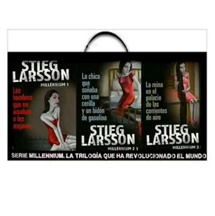 Millenium 1: Los hombres que no amaban a las mujeres.Primer volumen de la trilogía que ha revolucionado la literatura criminal de los últimos tiempos. Un retrato moderno de la corrupción, la violencia, el sufrimiento y la liberación alrededor de la pareja de investigadores más enigmática.Millenium 2: La chica que soñaba con una cerilla y un bidón de gasolina.Las vidas de los dos protagonistas parecen haberse separado por completo, pero entre tanto… una muchacha, atada a una cama, soporta un día tras otro las horribles visitas de un ser despreciable y, sin decir palabra, sueña con una cerilla y un bidón de gasolina; la forma de provocar el fuego que acabe con todo.Millenium 3: La reina en el palacio de las corrientes de aire.Los lectores que llegaron con el corazón en la mano al final de la chica que soñaba con una cerilla y un bidón de gasolina, quizás prefieran no seguir leyendo estas líneas y descubrir por sí mismos cómo sigue la serie y, sobre todo, qué le sucederá a Lisbeth Salander.