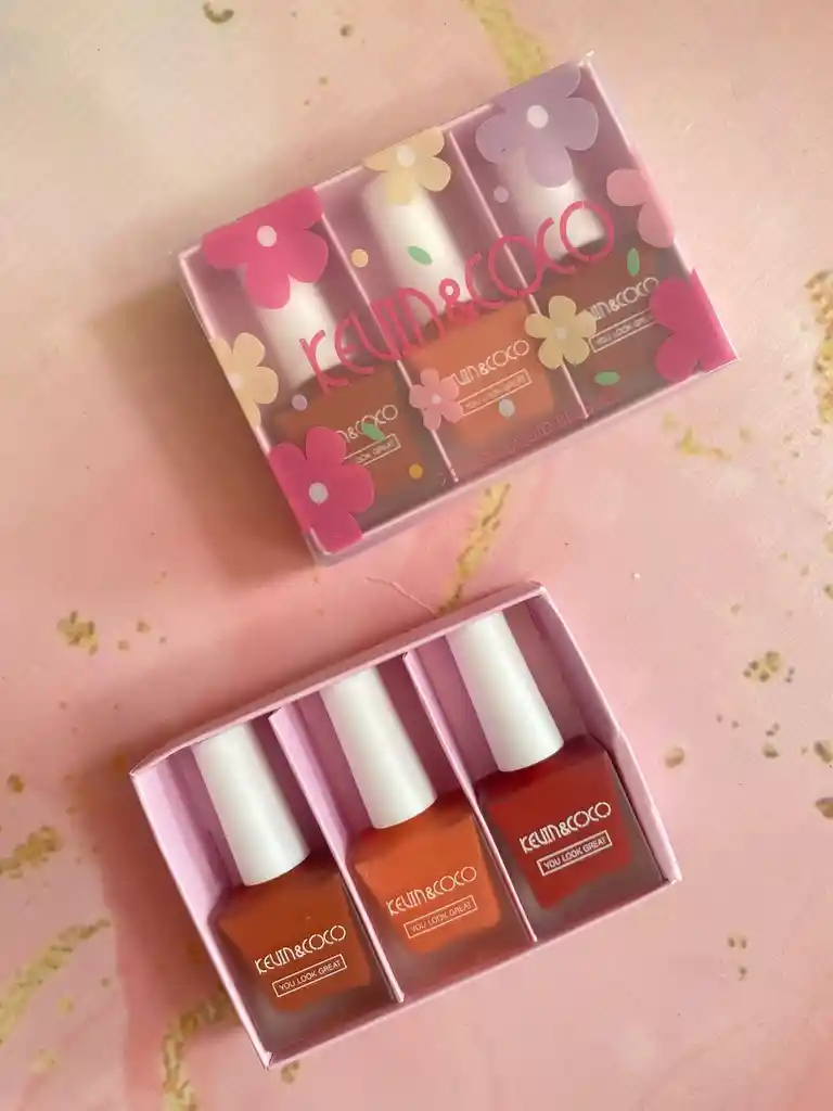 kit de tes rubores liquidos, marca kevin coco. alta duración, acabado mate.