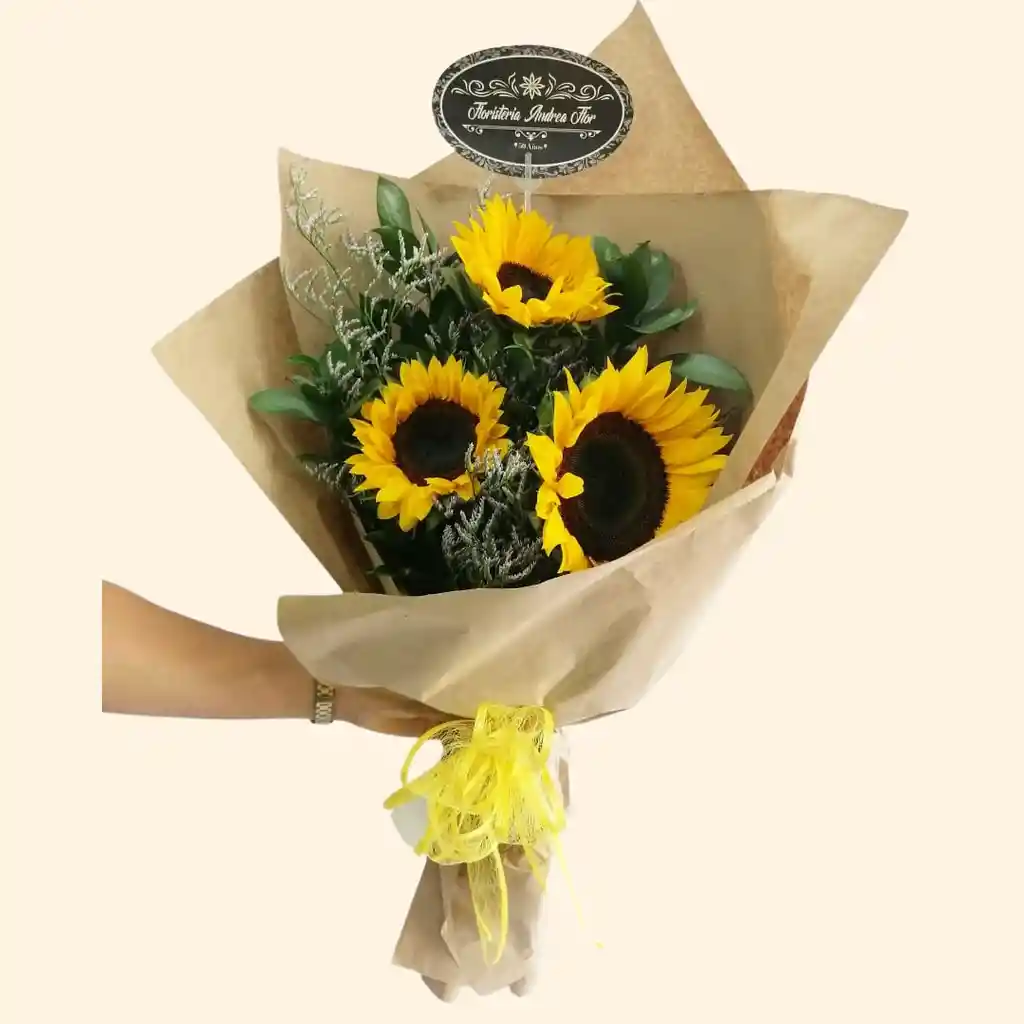 Incluye: Girasol, caspia, ruscus, papel decorativo y moño de color Amarillo ideal para el Agradecimiento
