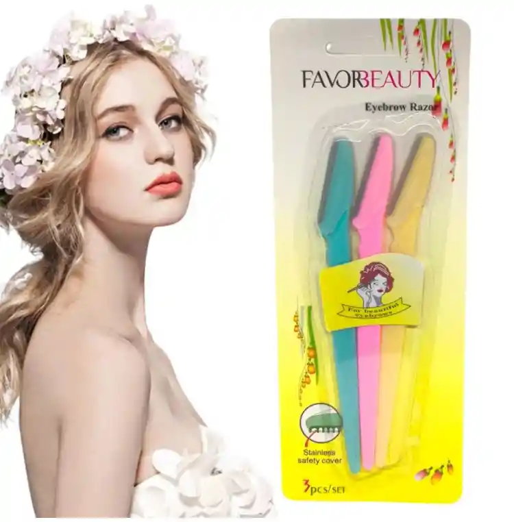 El artículo en la imagen es un set de perfiladores de cejas Pink Key. Incluye 3 piezas por set. Diseñado para cejas hermosas ("For eyebrows Beautiful"). Cuenta con cubierta de seguridad de acero inoxidable.
