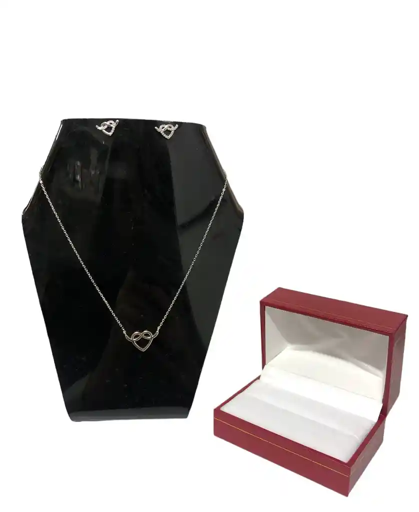 TRIO PLATA LEY 925 CORAZON GARANTIA ORIGINAL + ESTUCHE DE LUJO