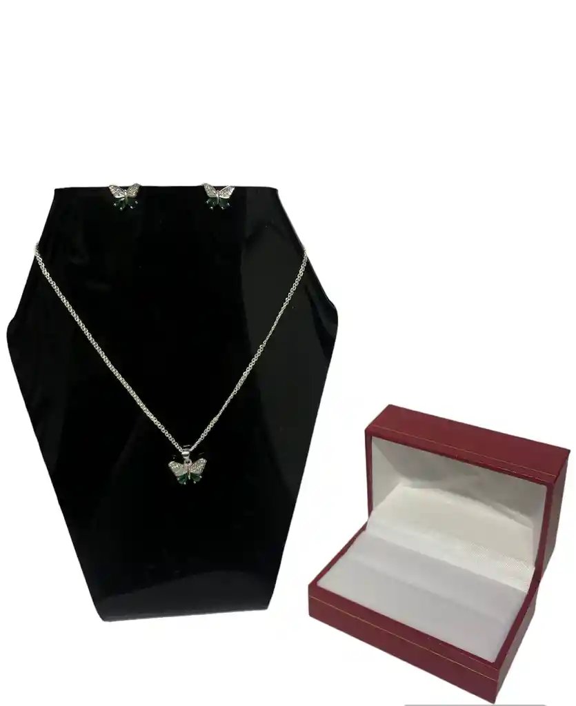 TRIO PLATA LEY 925 MARIPOSA BRILLOS Y GEMA VERDE GARANTIA ORIGINAL + ESTUCHE DE LUJO