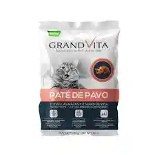 GRAND VITA Paté Gato Tripack 3 unidades 100gr es un alimento húmedo super premium para gatos de todas las razas y etapas de vida, que ayuda a complementar la nutrición de tu peludo con ingredientes que aportarán múltiples beneficios tanto en su interior como su exterior, sin colorantes ni conservantes artificiales. Cada Tripack tiene 1 sobre de cada sabor: Pavo, Pollo y Salmón.
