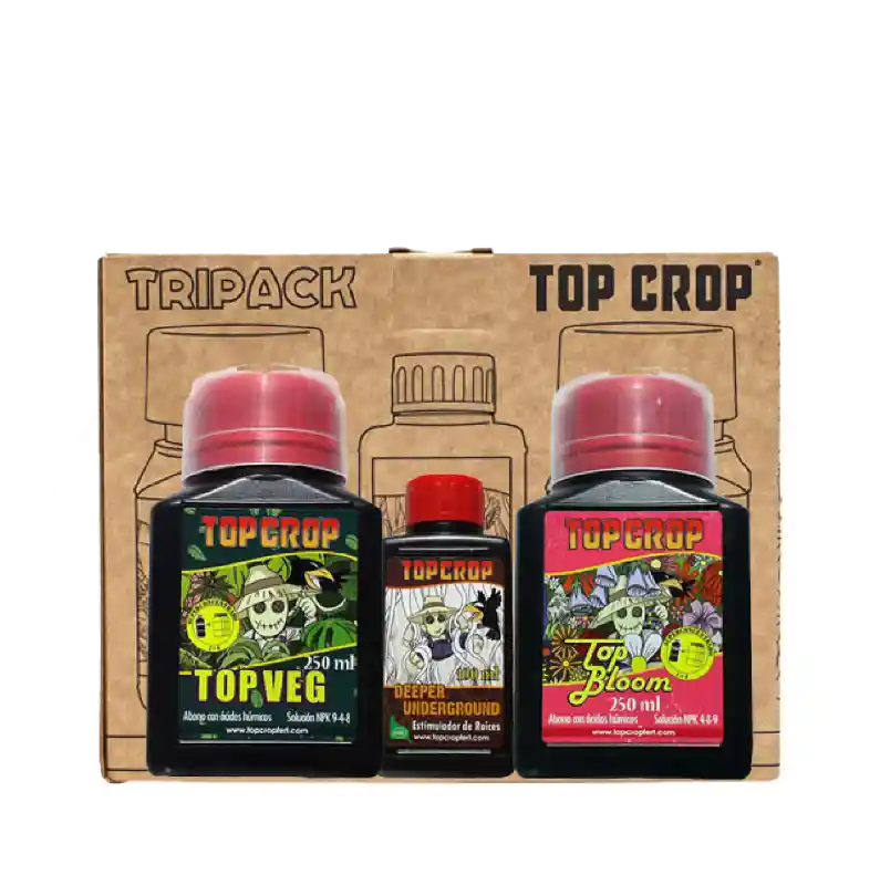 Crecimiento, floracion y enraizante Top Veg 250 ml, Top Bloom 250 ml y Deeper Underground 100 ml.