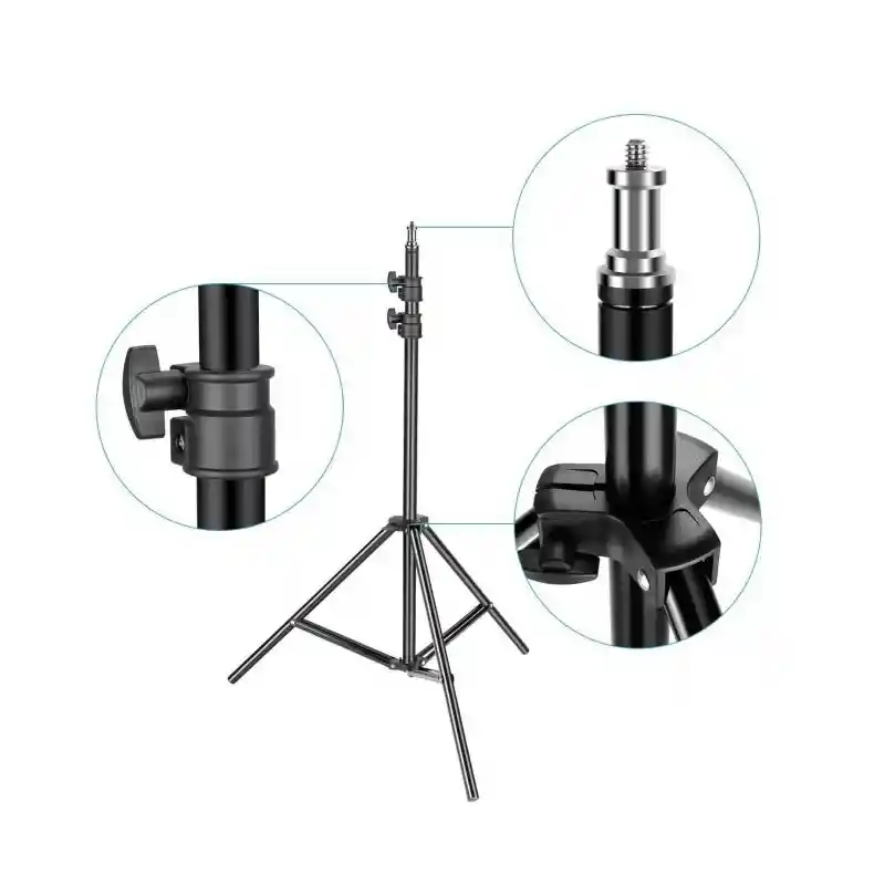 Trípode de Luz de alta resistencia hecho en aluminio, por su increíble relación calidad precio una de las mejores inversiones que podrá hacer para el desarrollo de la labor fotográfica y videos, tanto profesional como amateur. Si ya tiene sus flashes y luces de estudio, pero requiere de un soporte capaz de fijarse en la posición que necesita en cada momento y que aporte la estabilidad que necesita, el Trípode de Luz es lo que buscaba. Equipo diseñado para ser práctico, liviano y resistente, perfecto para todo tipo de flashes y luces de estudio, por lo que podrá usarlo con diferentes herramientas además de adaptarse a las diferentes necesidades según el equipo que requiera usar. Este es un Trípode de alta calidad, se puede extender hasta de 2.10 cm de alto y al mismo tiempo se puede transportar fácilmente ya que mide 50 cm plegado, haciéndolo un accesorio ideal y portátil para sacarle así el máximo partido a sus sesiones. Con pivote de conexión universal estándar lo cual permite colocar luces, reflectores o flashes de estudio de casi cualquier tipo y de hasta aprox. 10 kg de peso. Elegante, estable y ligero, de 3 piernas, con reguladores de longitud en cada sección del trípode. Para usar en: Fotografía, vídeo, Flashes de estudio y Flashes de cámara.