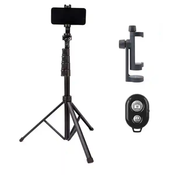 ¡Captura tus mejores recuerdos con tu Trípode para smartphone plegable de aluminio con altura ajustable Tr3pod, con obturador de cámara conexión bluetooth remoto para no perderte ningún recuerdo! - Incluye soporte para conectar tu teléfono, manteniendo cómodamente un smartphone de 5.5 a 9 cm de ancho. - Obturador de cámara remoto: Incluye obturador de cámara remoto para iphone y Android, te permitirá tomar fotografías y videos a una distancia de hasta 10 mts. - Obturador compatible con Android 4.2.2 OS y superior, y Apple iOS 6.0 y superior: Opción para utilizar la aplicación integrada o la aplicación Google Camera 360. - Trípode de aluminio estable, resistente, de confección sólida y de alta calidad. - Mango acolchado, para mejor fluidez de movimiento en tus videos, mayor comodidad al movilizar y ajuste perfecto del ángulo para tus fotos. - El cabezal proporciona control de giro e inclinación, así como una plataforma de cámara inclinada horizontalmente para cambiar a una orientación vertical de 90°. - Amplia rotación de tu cámara o celular una vez instalados, con dial 360° - 3 aperturas estables para las patas de tu trípode, con antideslizante en su base para evitar movimientos durante tus capturas. - Puedes usarlo de forma invertida para sacar fotos a ras de piso o hacer planos contrapicados. - Con nivelador para asegurar tomar la foto o video perfecta. - Plegable y liviano para que lo lleves contigo a todos lados. - Incluye accesorio para celular y bolso para transportarlo. ----------------------------------------------------------------------- FICHA TÉCNICA - Material: Aluminio, ABS y gomas de silicona - Soporta smartphone de hasta : 9 cm de ancho - Altura ajustable - Altura mínima: 48.5 cm - Altura Máxima: 168.5 cm - Plegable - Compatibilidad del soporte para teléfonos con trípodes, cabezales y placas de trípode y palos para selfies con monturas de 1/4"-20 - rotación del soporte para teléfono: 360° - Obturador incluye pila - Distancia máxima uso obturador: 10 mts - Conexión obturador: Bluetooth - 3 niveles de altura - Color: Negro - Peso: 0.46 kg COMO UTILIZAR EL OBTURADOR DE CÁMARA: 1. Encienda el control remoto cambiando el botón de encendido / apagado (en el lado derecho del control remoto). Verás una luz LED azul parpadeando. 2. Activa la función bluetooth en tu teléfono y busca el nuevo dispositivo. 3. Seleccione el dispositivo ""AB Shutter3"" de la lista y el emparejamiento finalizará en unos segundos. 4. Abra la cámara y listo. Nota: Para la mayoría de los dispositivos, no es necesario descargar aplicación, el control remoto se emparejará con su dispositivo a través de BT. Para los usuarios de Sony Xperia S, HTC One y X+, descargue la aplicación "Camera 360" en Google Play Store, luego conéctela para usarla. ----------------------------------------------------------------------- QUE VIENE EN LA CAJA - 1 Trípode de aluminio Tr3pod - 1 Accesorio para celular - 1 control remoto obturador para tomar imágenes a la distancia **Tr3pod® es distribuida en Colombia y Sudamérica exclusivamente por Builder Commerce SAS**