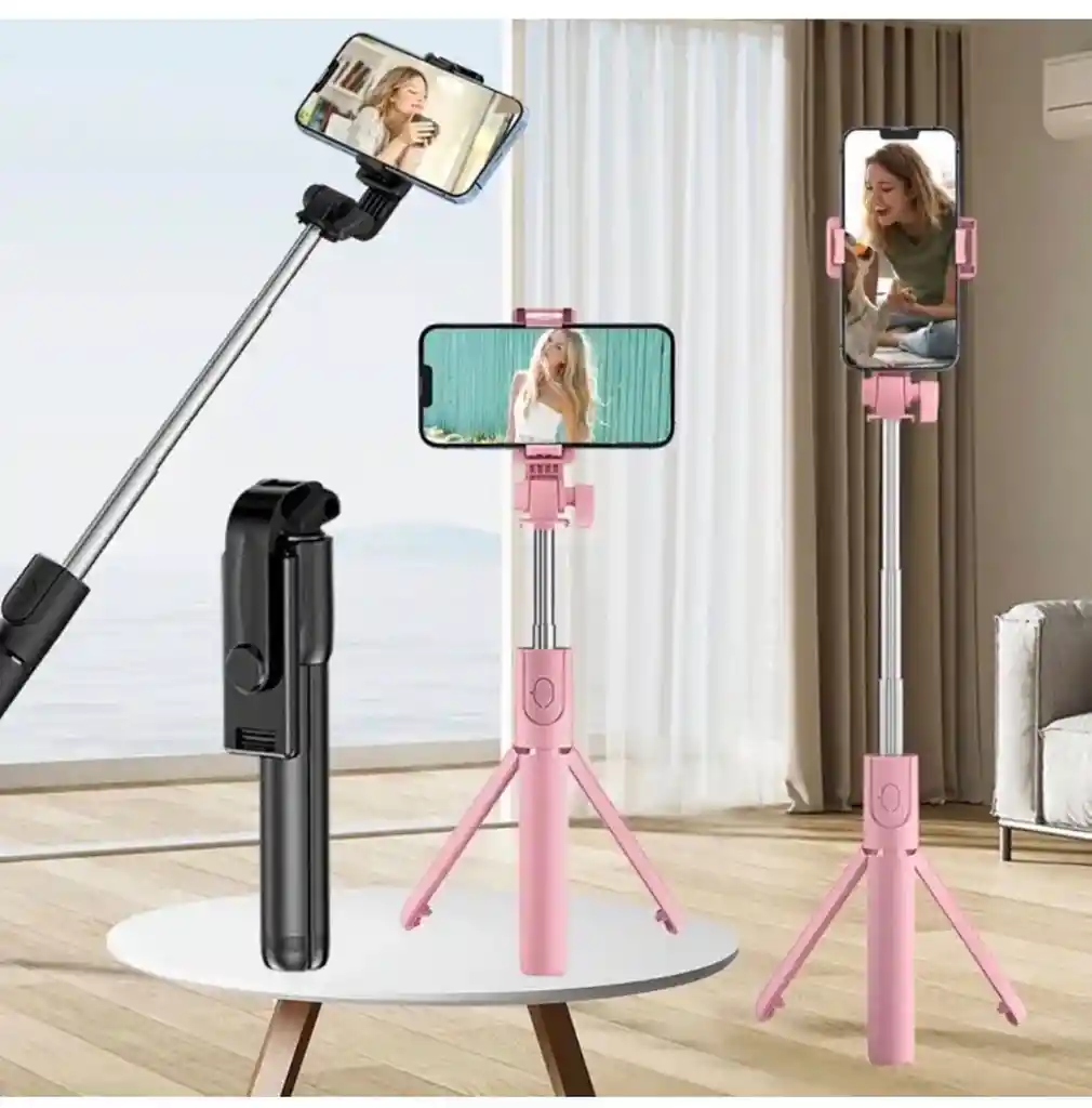 Trípode con palo para selfies y con control remoto inalámbrico, compatible con iPhone, Android y Samsung, soporte extensible para teléfono de 360°. disponiblecolor rosado
