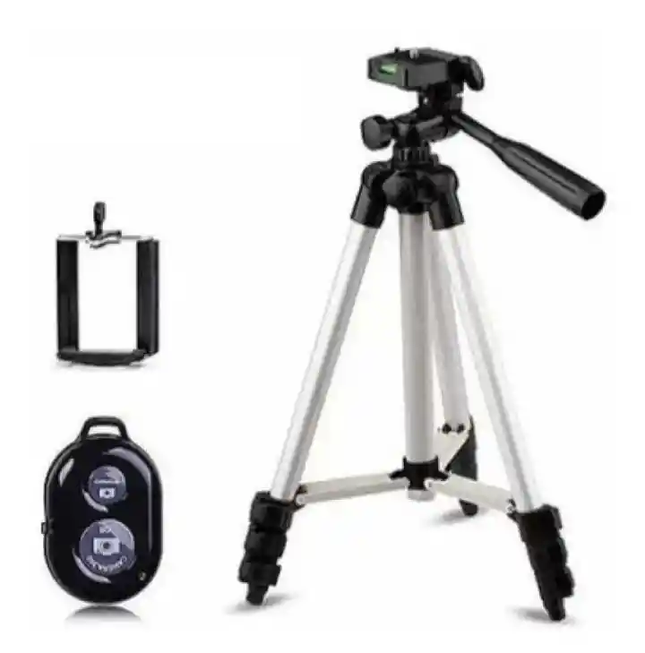 TRÍPODE para el desarrollo de la labor fotográfica, tanto profesional como amateur. Nuestros equipos están diseñados para ser prácticos, livianos y resistentes, además de adaptarse a las diferentes necesidades según el equipo que requieras usar. Ahorre tiempo y tenga la mejor estabilizad en sus vídeos y fotografías, el trípode tiene Altura Máxima de trabajo 105cm y Mínima de 34cm, una Altura plegada 34cm, Max. Diametro del tubo de 17mm y peso de 420g, cuerpo de aluminio, Cabeza de plástico, con tubo de nivel, compatible con Nikon, Kodak, Samsung, Olympus, etc. CONTENIDO: - Tripode - Estuche - Adpatador Celular