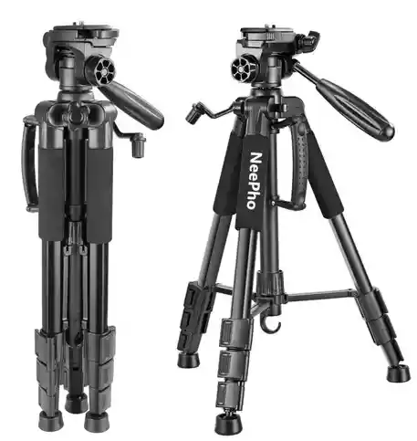 Altura máxima 150 cm, ajuste de altura fácil y fuerte. Soporte de disparo profesional de gran angular: utiliza un marco de aleación de aluminio para mejorar la vibración y aligerar el peso.