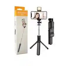 un control remoto Bluetooth. Multifuncional: Funciona como palo selfie extensible y como trípode de escritorio. Conectividad: Incluye un control remoto Bluetooth desmontable para tomar fotos a distancia. Rotación: Cuenta con una pinza para celular que rota 360 grados para tomas verticales u horizontales. Material: Está fabricado en aluminio y plástico ABS, siendo ligero y portátil.