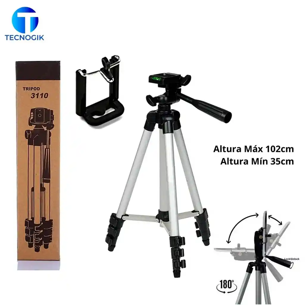 ✅Soporte universal ✅Giratorio (Permite posición vertical u horizontal) ✅Altura graduable Máximo 102CM/ Mínimo 35 cm ✅Diseñado para cámaras, video cámaras, GoPro y celulares 📱 ✅Portátil