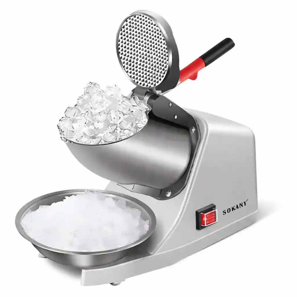 Trituradora de hielo eléctrica Máquina de Raspados de cono de nieve con cuchillas de acero inoxidable 300W 145 lbs/hr para uso doméstico y comercial. Material duradero y forma elegante y suave: construido con cuerpo de acero inoxidable de grado alimenticio. Tritura de hoja de acero inoxidable 65kg por hora, lo que te permite producir hielo picado en cuestión de segundos para conos de nieve, postres, golosinas heladas e incluso para mantener los alimentos fríos, como mariscos, frutas y verduras Detalles para un uso cómodo: cuenta con un diseño de mango recto con un agarre antideslizante para un manejo sin esfuerzo las condiciones inoxidables e higiénicas garantizan la seguridad alimentaria el cuenco de acero inoxidable de grado alimenticio está incluido para atrapar hielo afeitado el diseño mecánico de fácil limpieza hace tu vida más fácil, ahorrándote energía y tiempo Seguro y estable: base resistente de fundición pesada con patas de goma antideslizantes que ofrece una estación de trabajo estable y silenciosa la vibración y el ruido se minimizan para mantener un ambiente relajado y una experiencia cómoda cubierta resistente al agua en el interruptor de encendido para un funcionamiento con la mano mojada Funcionamiento simple y práctico: simplemente enchufa, añade cubitos de hielo y presiona el mango para obtener hielo picado sin complicaciones con un aspecto elegante, ya sea que se coloque en la mesa de una casa, un bar o un restaurante, su diseño elegante es sin duda un encanto llamativo. Amplia aplicación: la trituradora eléctrica de hielo para uso doméstico y comercial es tu compañero ideal cuando necesites hielo granizado en fiestas, reuniones en casa o cualquier otra ocasión. Es un gran ayudante para hacer refrigerios frescos durante el verano, como batidos, bebidas congeladas, hielo picado y salmón frío en vendedores, bares, cafeterías, carnavales, banquetes, escuelas, iglesias, comunidades, etc Marca: SOKANY Modelo: SK-777 Tensión: 110V Potencia: 300W Frecuencia: 50 Hz Velocidad de rotación: 2200 R/Min Cuchillas: Dos cuchillas de acero inoxidable incorporadas. Material de la máquina: ABS, aluminio, acero inoxidable Tiempo máximo de trabajo continuo: 20 horas Tiempo mínimo de parada: 15 minutos Capacidad de corte de hielo: 65 kg por hora Diámetro de la entrada de hielo: 11,5 cm. Tamaño del bol de hielo: 20,5 cm de diámetro Tamaño del cuerpo: 40*18*31 cm Peso de la máquina: 3,3KG Tamaño del paquete: 42,5*20,5*32 cm Instrucciones de uso. 1. Compruebe que la tensión de alimentación coincide con la indicada en la placa de características y que la fuente de alimentación está conectada a una toma de tierra fiable. 2. Levante el mango de la prensa de hielo hasta el tope superior, enchufe la fuente de alimentación, encienda el interruptor principal, coloque la cubeta de hielo en el estante inferior y coloque los gránulos de hielo en el cilindro de trituración de hielo. (Nota: la cantidad de hielo no debe superar el nivel del cilindro triturador de hielo) y, a continuación, presione hacia abajo el asa trituradora de hielo. Cuando termine de trabajar, levante el mango triturador de hielo hasta el tope superior y repita el procedimiento anterior. Limpieza y mantenimiento Cuando la trituradora de hielo haya terminado, apague el interruptor, desenchúfela de la red eléctrica, seque la máquina con una toalla seca y colóquela en un lugar seco. Precauciones Cuando se utiliza, la salida de los gránulos de hielo no debe bloquearse, de lo contrario se producirá un atasco en el disco y se quemará el motor. Si se produce el fenómeno anterior, identifique inmediatamente la causa, corte la alimentación y levante el mango. Lo que obtienes con tu compra: 1 x Maquina Trituradora 1 x Manual (idioma español no garantizado)