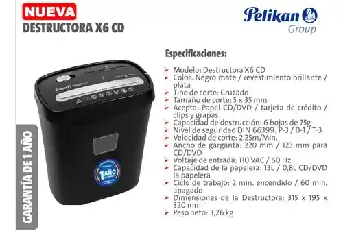 Trituradora o destructora De Papel X6 hojas Cd Pelikan