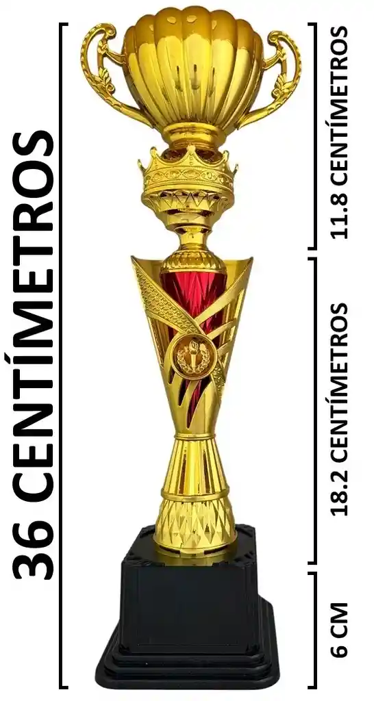 TROFEO CONDECORACION COPA REY 36 CENTÍMETROS COPA #22/ DORADO - NEGRO El Trofeo Condecoración Copa Rey de 36 cm es una excelente opción para premiaciones y reconocimientos en eventos corporativos, competencias deportivas y ceremonias académicas. Fabricado en PVC resistente, ofrece una estructura liviana y duradera con una presentación elegante y llamativa. Tiene una altura de 36 cm, un ancho de 13.1 cm y un peso aproximado de 480 g, lo que le brinda buena estabilidad y presencia visual. Motivo General, perfecto para premiaciones corporativas, eventos deportivos, ceremonias académicas y más. No incluye grabado, permitiendo personalización posterior según la ocasión. El Trofeo Condecoración es un símbolo de logro, reconocimiento y honor, diseñado para premiar el esfuerzo, la dedicación y el espíritu de superación en todo tipo de competencias y actividades. Su presencia representa el triunfo alcanzado y se convierte en un recuerdo duradero para quien lo recibe, reforzando la motivación y el orgullo personal. Fabricado en PVC de alta calidad, este trofeo destaca por su acabado brillante y superficie pulida, que le confiere una apariencia elegante, clásica y llamativa. Su diseño lo hace ideal para una amplia variedad de eventos, desde competiciones deportivas hasta actividades académicas, empresariales y recreativas. Gracias a su estructura resistente y materiales durables, es apto para un uso prolongado, manteniendo su forma y presentación con el paso del tiempo. Es perfecto para premios de participación, primeros lugares, torneos, celebraciones, representaciones teatrales, eventos escolares y reconocimientos laborales, adaptándose tanto a niños como a adultos. Este trofeo no solo cumple una función decorativa, sino que actúa como un poderoso estímulo emocional, reforzando valores como el esfuerzo, la disciplina y el trabajo en equipo. Además, puede utilizarse como recuerdo de eventos especiales o como premio motivacional en fiestas, jornadas deportivas y actividades institucionales. Un trofeo que transforma cada logro en un momento memorable y cada victoria en un recuerdo imborrable. Ideal para reconocer el mérito y celebrar el éxito con distinción. CARACTERÍSTICAS: - Estructura liviana y fácil de manipular. - Presentación elegante y llamativa. - Ideal para competencias deportivas y eventos escolares. - Apto para niños y adultos. - Uso como premio, recuerdo o reconocimiento. - Perfecto para torneos, celebraciones y premiaciones. - Representa logro, honor y esfuerzo. - Fácil de exhibir en vitrinas, escritorios o estanterías. - Motivo: General, perfecto para premiaciones corporativas, eventos deportivos, ceremonias académicas y más. - Material: PVC Resistente. - Peso: 480 gramos aproximadamente. - Ancho: 13.1 centímetros (En su parte más ancha). - Altura Total: 36 centímetros. - Altura de la Base: 5.9 centímetros. - Incluye grabado: No **LA GARANTÍA CUBRE ÚNICAMENTE DEFECTOS ASOCIADOS A LA FABRICACIÓN DEL PRODUCTO O AL ESTADO DE LOS MATERIALES, CUALQUIER DAÑO CAUSADO POR USO, MANIPULACIÓN O MANTENIMIENTO INAPROPIADO DEL PRODUCTO, NO ESTÁ CONTEMPLADO DENTRO DE LA GARANTÍA. DISTRIBUIDOR AUTORIZADO Envíos a nivel nacional ONE ZONE SPORT NIT: 901.451.888-6