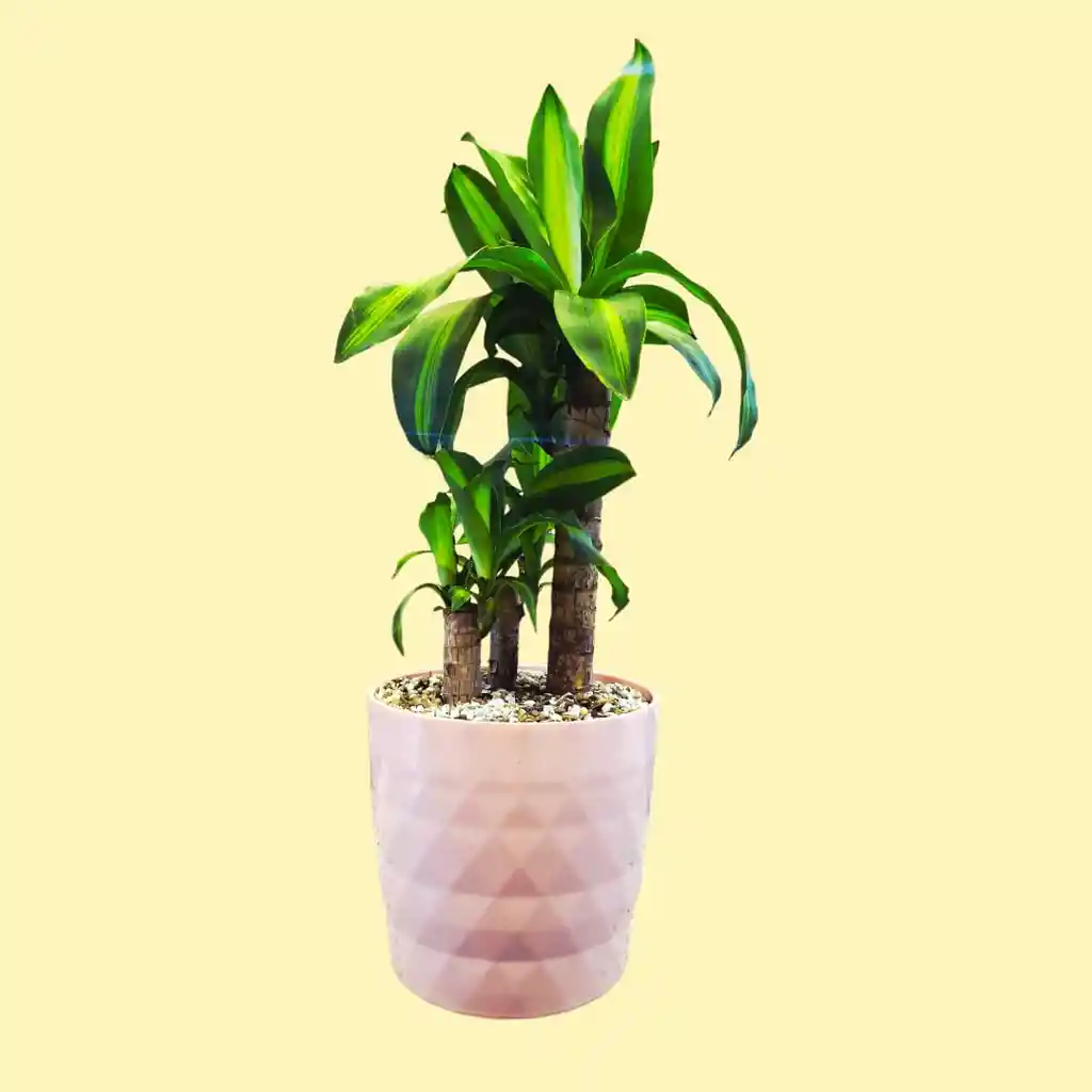 Dale un aire fresco, moderno y lleno de buena vibra a tus espacios 💖🌱 con este Tronco de la Felicidad, una planta resistente y muy decorativa. Viene en una maceta rosa de diseño geométrico, perfecta para realzar cualquier rincón del hogar u oficina. 🌞 Luz indirecta, ideal para interiores 💧 Riego moderado y fácil mantenimiento 🍀 Atrae prosperidad y armonía 🎁 Un regalo elegante y con significado Una planta que combina belleza, estilo y energía positiva 🌿✨ ¡Ideal para transformar tu espacio con vida y color! 💕