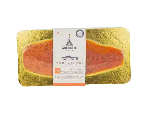Filete de Trucha de origen local, ahumado Naturalmente y terminado a las finas hierbas, producto listo para consumir x 150 gr
