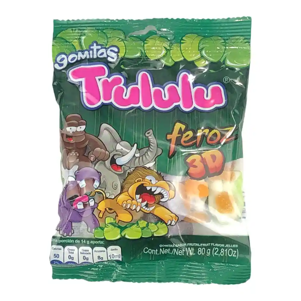 Deliciosas gomas Trululu esponjosas y ácidas de tiburones murciélagos y cocodrilos. Sus divertidas formas y sabores las hacen perfectas para fiestas infantiles. Packing: Bolsa